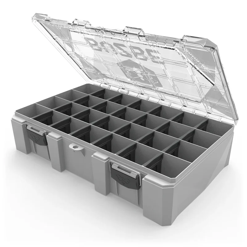 Perfect for bigger crankbaits or bulk storage, the Buzbe Basic 28D Deep Tackle Box is a traditional-style tackle box with deep sturdy dividers that can be removed to fit your oversized baits. Built with an eco-friendly plastic material, the 28D Deep Tackle Box is outfitted with quick-pop access latches constructed with a stainless-steel latch strap and heavy-duty latch handles for quick and easy opening.